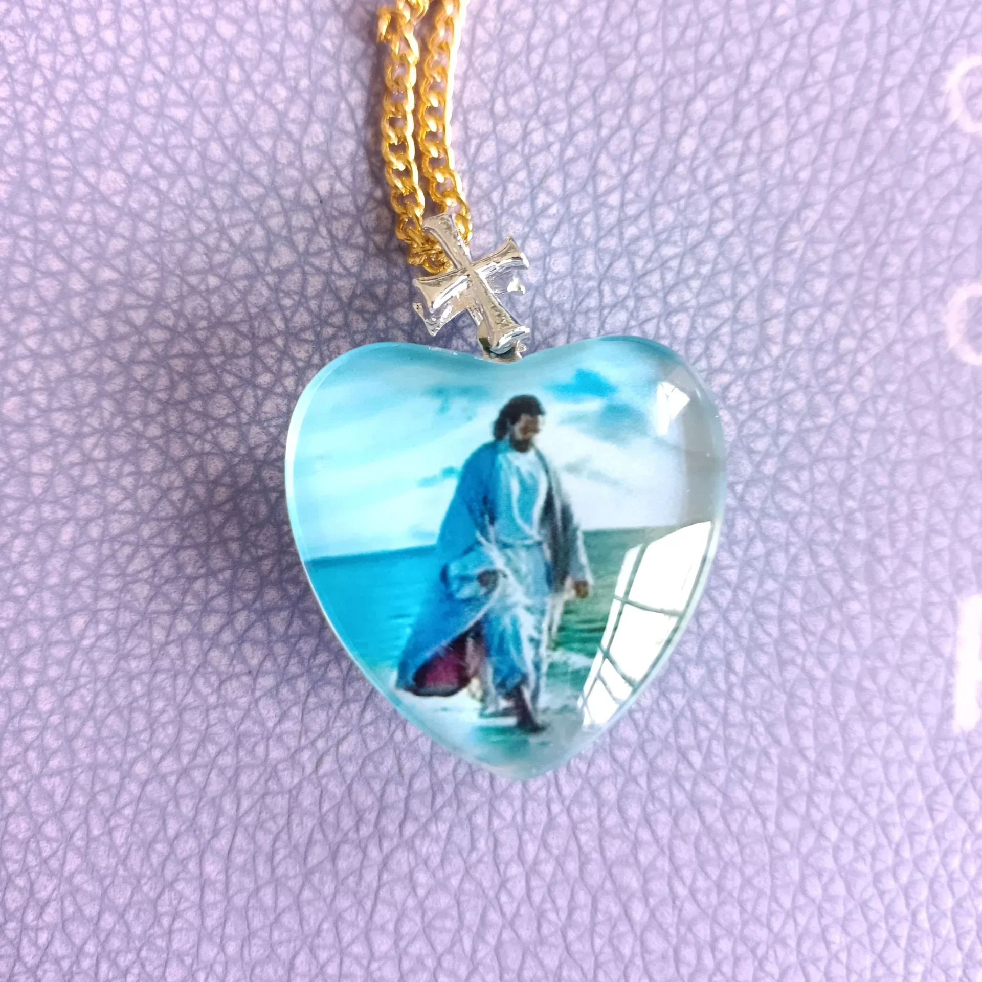 Hartvormige Kristallen glazen seaside Jezus hanger religieuze amulet accessoires