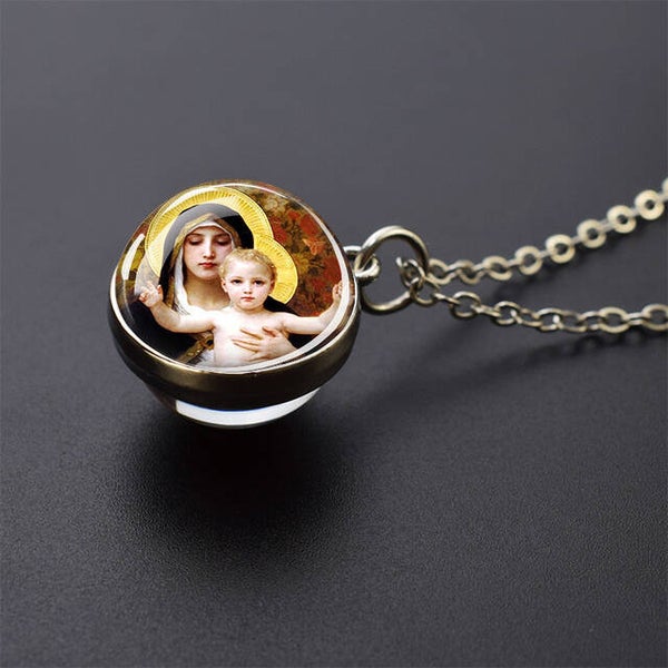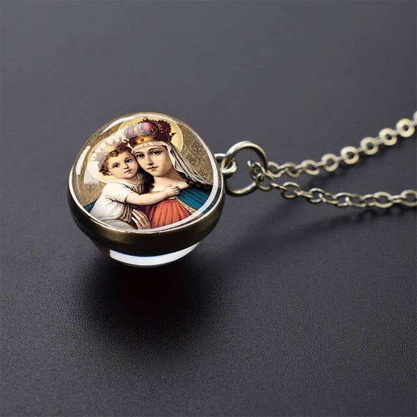 Jezus en maagd Maria ketting Saint Michael Jude Anthony Patrick Paul glas bal hanger religieuze sieraden