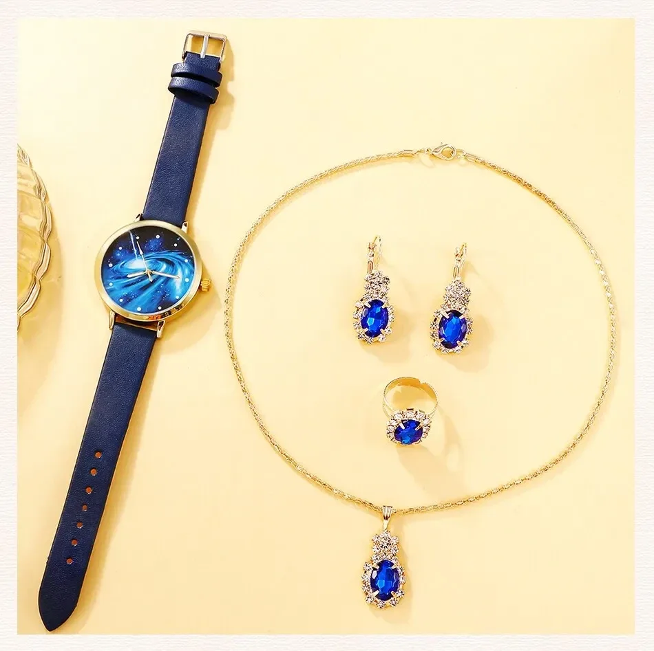 Voeg een vleugje elegantie toe aan elke fase van het leven met onze veelzijdige complete sieradenset. Deze set, inclusief een universeel horloge, prachtige oorbellen, een betoverende ketting, een elegante armband en een schitterende ring, is ontworpen om te stralen op elke leeftijd.