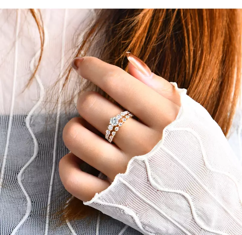 💖 Laat Je Hart Spreken: Voel de magie van de hoofdsteen, een fonkelende 0.5Ct D Color VVS1 Moissanite, omringd door kleinere Moissanite stenen. Dit is meer dan een ring; het is een emotioneel geladen kunstwerk dat de liefde en de mooie momenten in het leven omarmt.