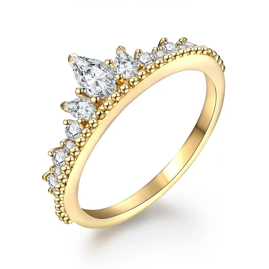 Stap in de wereld van tijdloze elegantie en buitengewone schittering met onze 18K Gouden Moissanite Kroon Ring, een meesterwerk dat pronkt met verfijning en klasse. Deze ring, vervaardigd uit hoogwaardig 925 sterling zilver en met een gouden plating van 18K goud, is een perfecte belichaming van luxe en stijl.