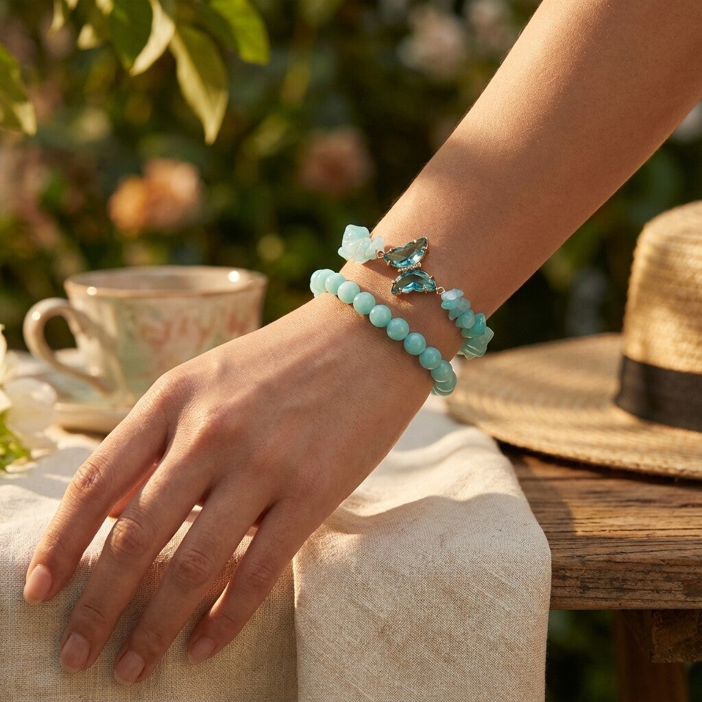 Laat je betoveren door de kracht en elegantie van deze prachtige armbandenset en voeg een sprankeling van luxe en sereniteit toe aan je dagelijkse leven.