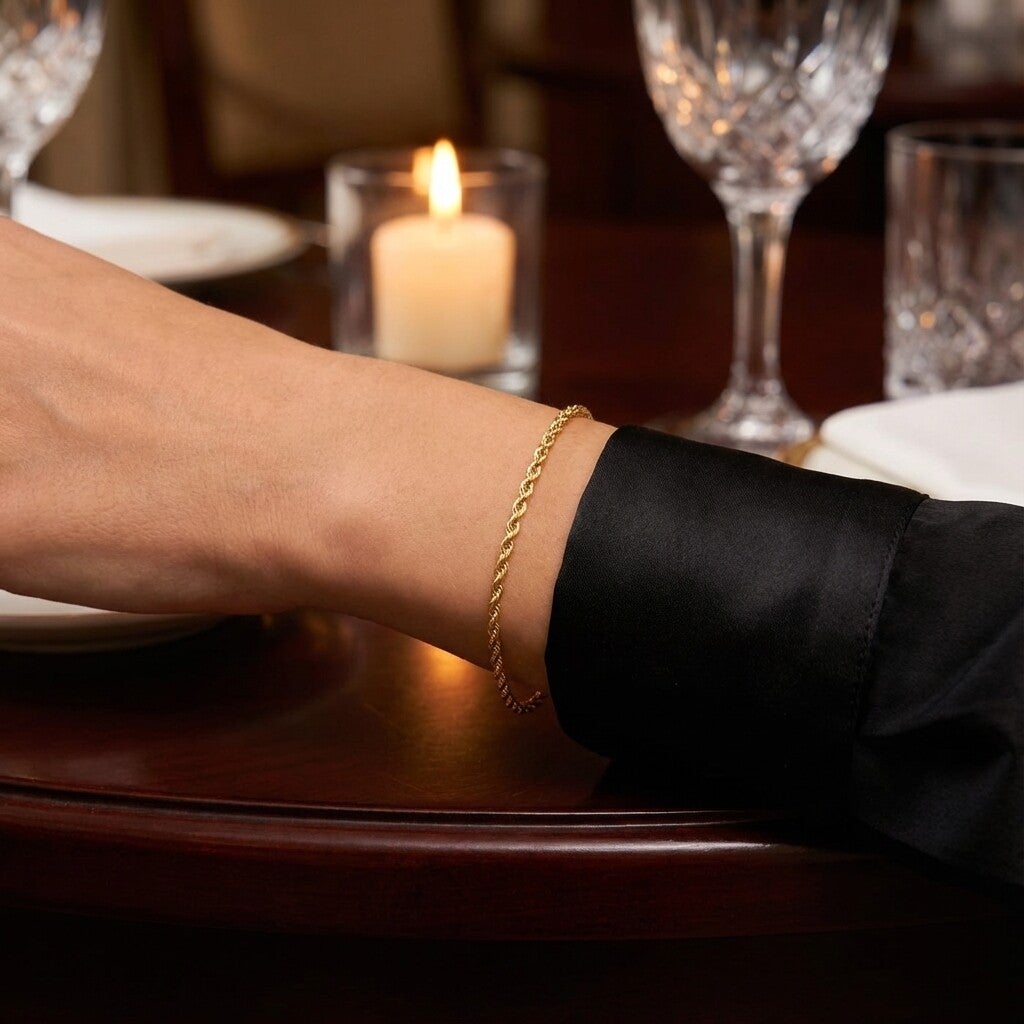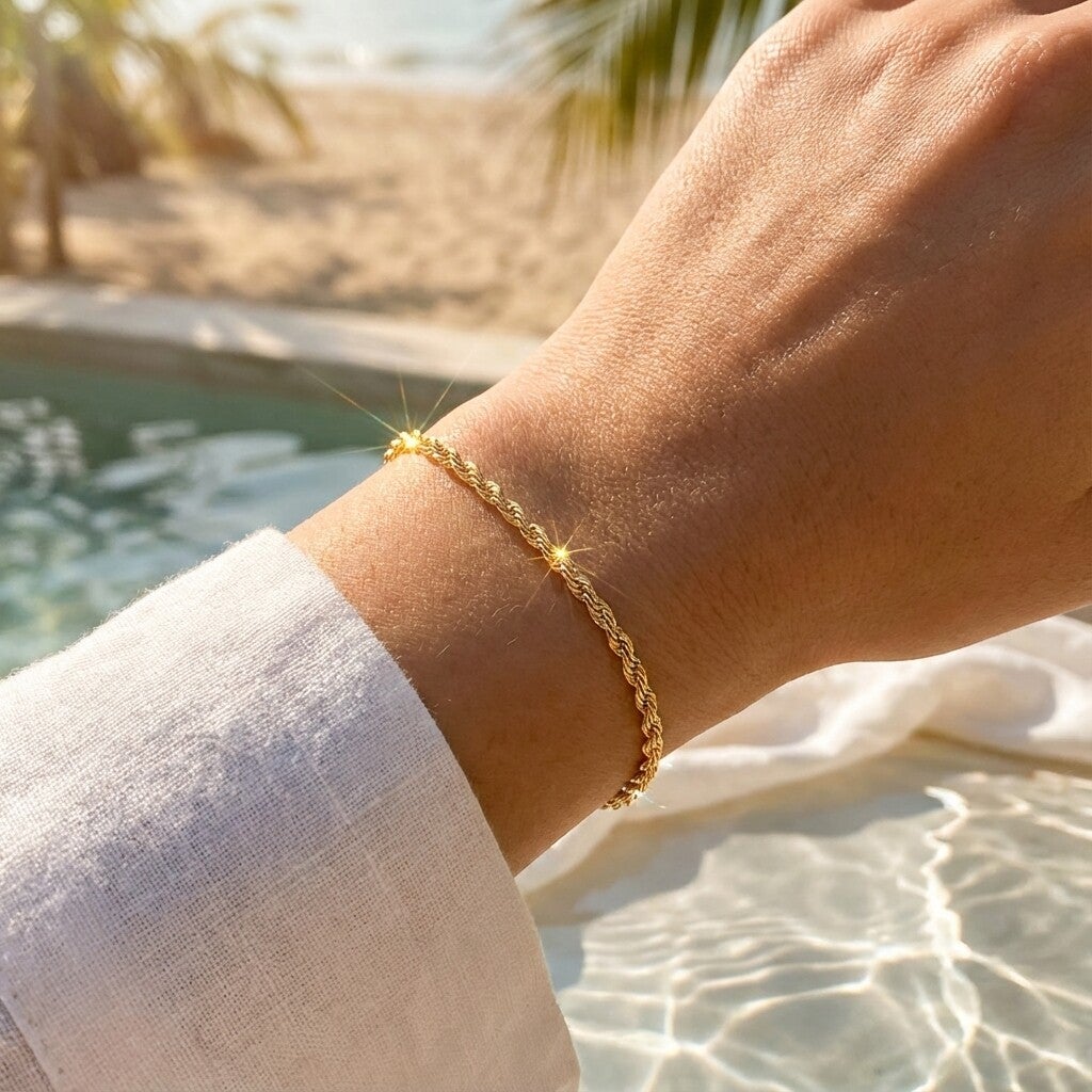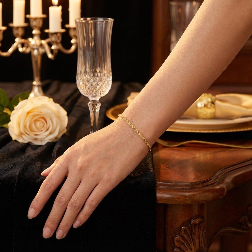 Dikte: Met een fijne dikte van 1.5 mm tot 2 mm is deze armband subtiel en sierlijk, perfect om alleen te dragen of te combineren met een gouden ketting.