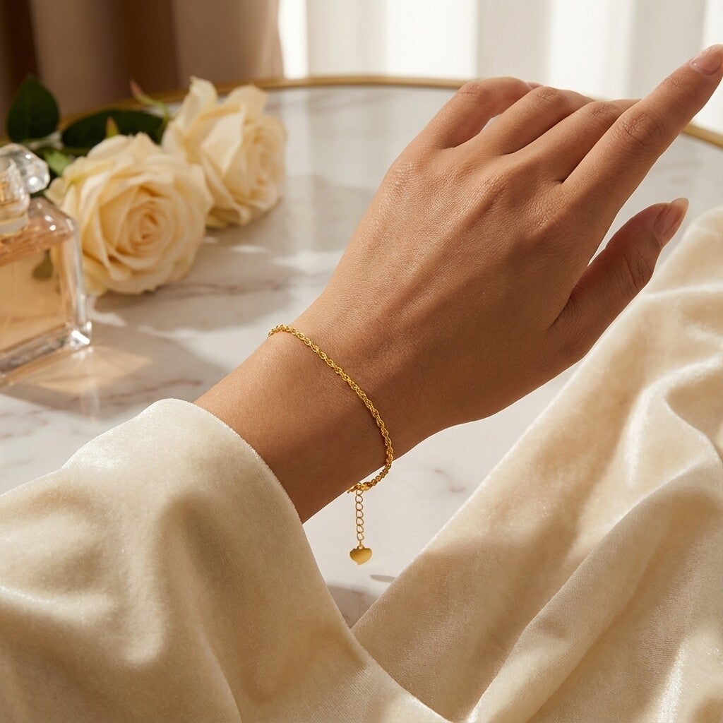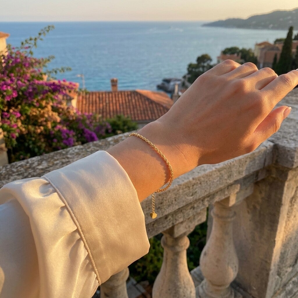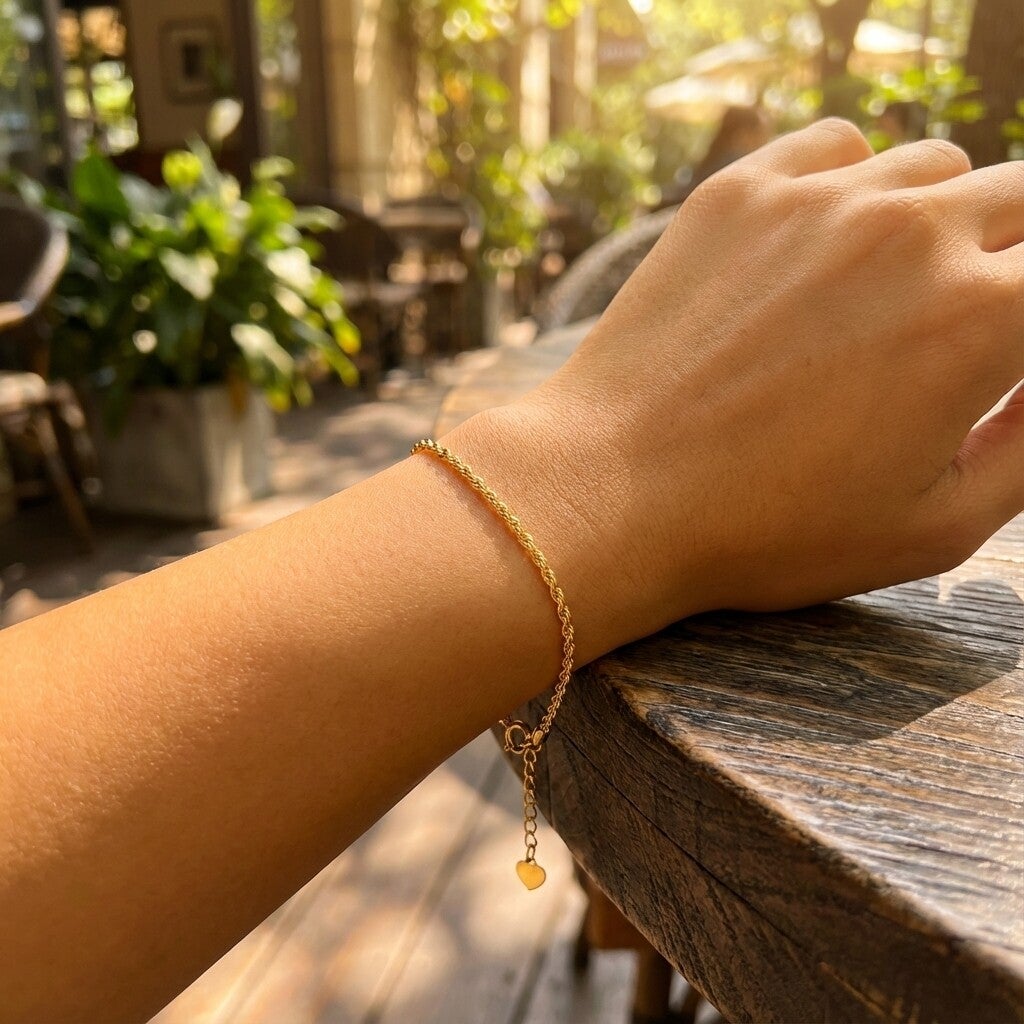 Dikte: Met een fijne dikte van 1.5 mm tot 2 mm is deze armband subtiel en sierlijk, perfect om alleen te dragen of te combineren met een gouden ketting.
