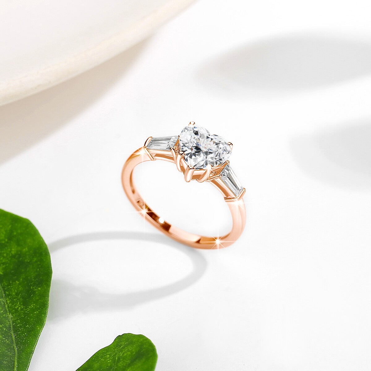 💎 Centraal Hart van Moissanite: In het hart van de ring schittert een prachtige hartvormige Lab-Grown Moissanite diamant, verkrijgbaar in 1 of 2 karaat.