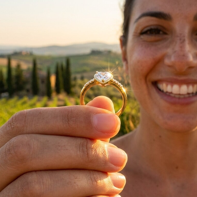 💎 Centraal Hart van Moissanite: In het hart van de ring schittert een prachtige hartvormige Lab-Grown Moissanite diamant, verkrijgbaar in 0.8 karaat omringd door zirkonia stenen.