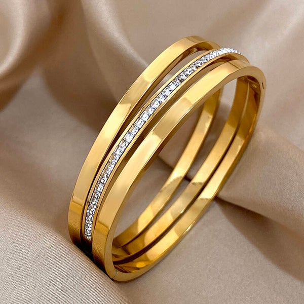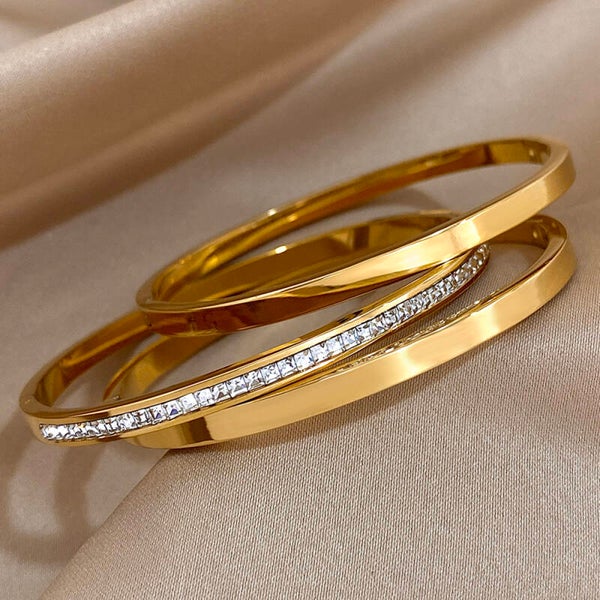 ✨ Strass Roestvrijstalen Open Manchet Armbandenset – Stijlvol, Waterbestendig & Tijdloos ✨