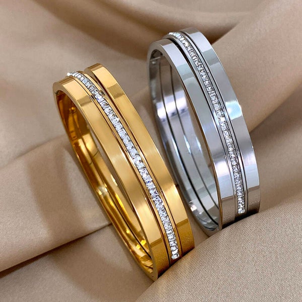 Laat jouw polsen stralen met deze prachtige open manchet armbanden, gemaakt van hoogwaardig roestvrij staal en versierd met schitterende strass- en zirkonia steentjes. Deze elegante sieradenset is perfect voor elke gelegenheid en geschikt voor zowel dagelijks gebruik als speciale momenten.