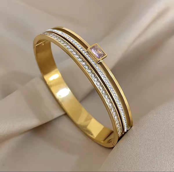De combinatie van glinsterende strass en helder fonkelende zirkonia steentjes zorgt voor een luxueuze uitstraling. De armbanden vangen elk straaltje licht op en schitteren bij iedere beweging.
