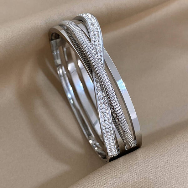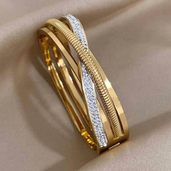 ✨ Strass Roestvrijstalen Open Manchet Armband – Stijlvol, Waterbestendig & Tijdloos ✨