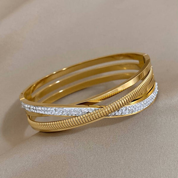 De combinatie van glinsterende strass en helder fonkelende zirkonia steentjes zorgt voor een luxueuze uitstraling. De armbanden vangen elk straaltje licht op en schitteren bij iedere beweging.