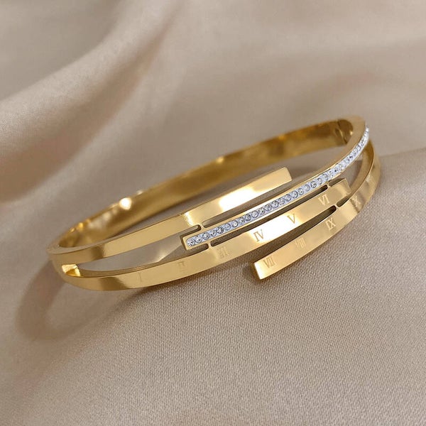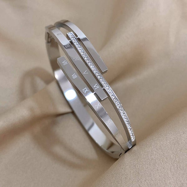 De armbanden zijn subtiel gegraveerd met Romeinse cijfers, een symbool voor tijd, herinneringen en betekenisvolle momenten. De combinatie van deze klassieke details met fonkelende zirkonia steentjes geeft de armband een luxe uitstraling die zowel modern als tijdloos is.