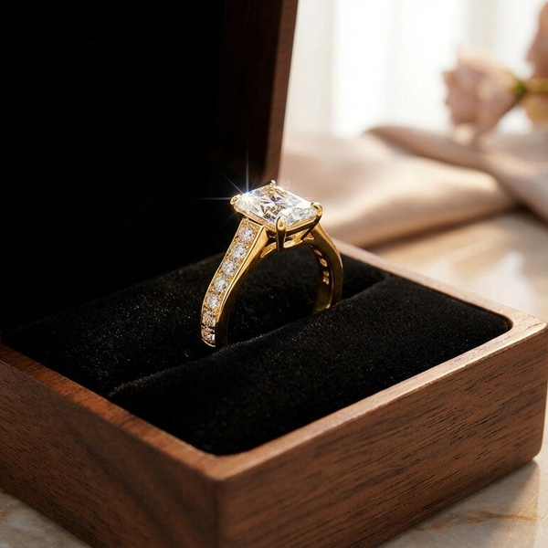 Van een aanzoek tot een blijvend symbool van trouw, deze ring komt in een luxe geschenkverpakking, ideaal voor verlovingen, bruiloften, of jubilea.