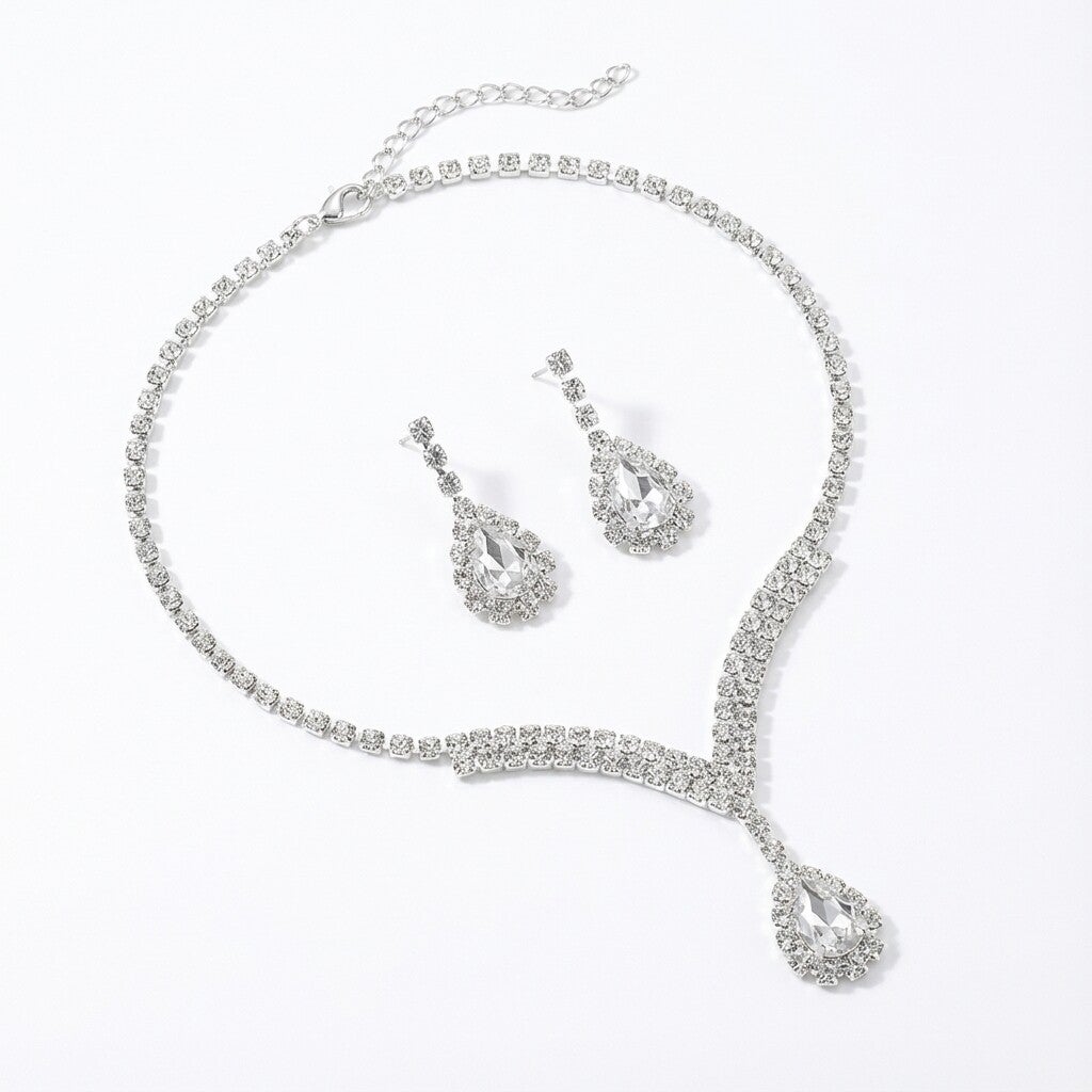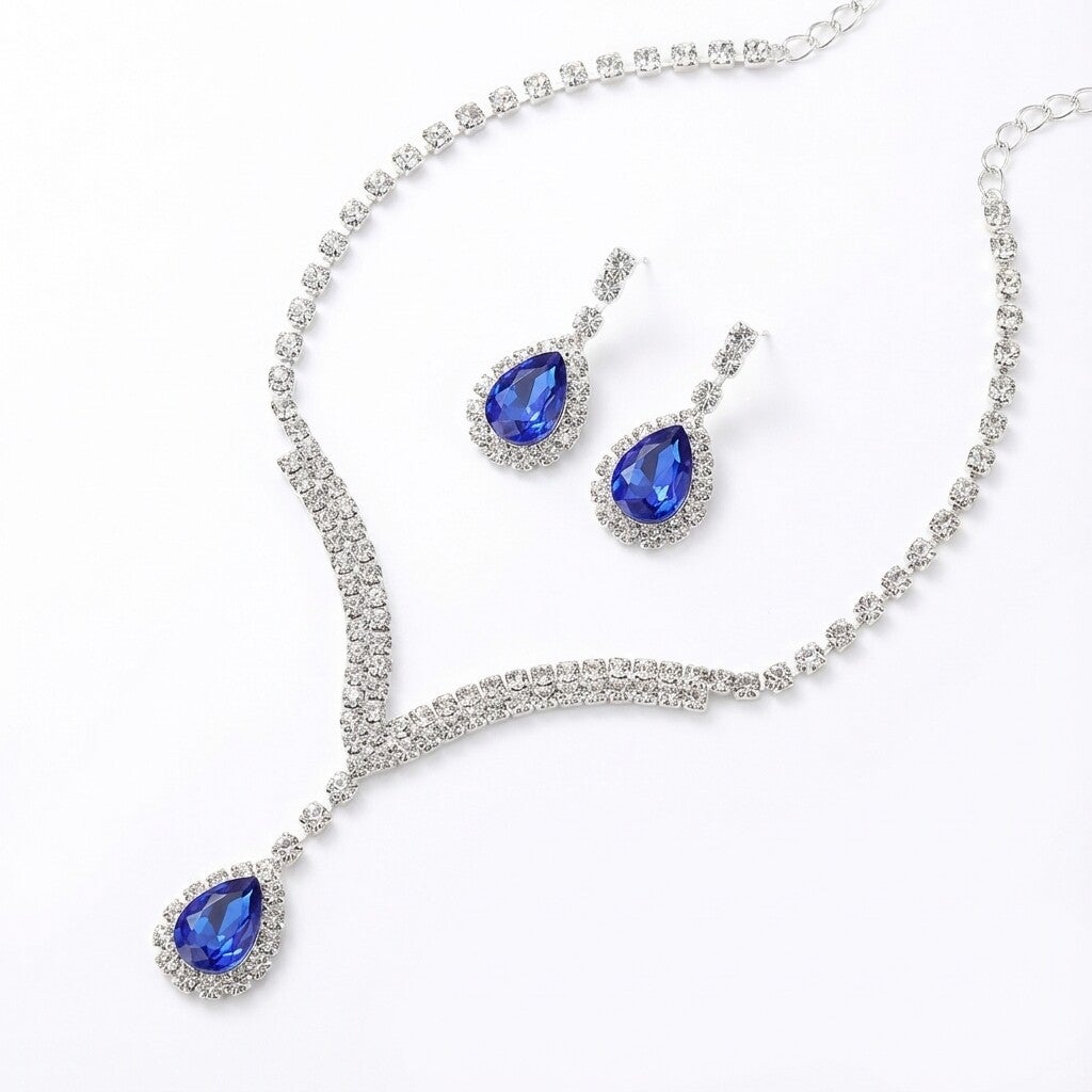 Stap stralend het middelpunt van elke gelegenheid binnen met onze adembenemende dames sieradenset, speciaal ontworpen voor bruiloften en feesten. Met schitterende gesimuleerde diamanten en elegante briolette edelstenen is deze set een ware symfonie van verfijning en glamour.