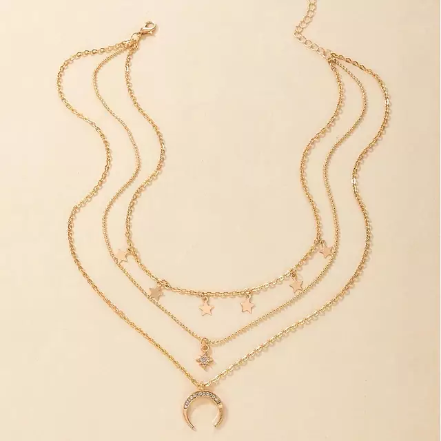 Streef naar de sterren en omhels de magie van de nachtelijke hemel met onze betoverende driedelige ketting set, geïnspireerd door de mystiek van de maan en sterren. Elk stuk straalt met sublieme elegantie en tijdloze schoonheid, waardoor je jezelf kunt omringen met de kracht en sereniteit van de kosmos.