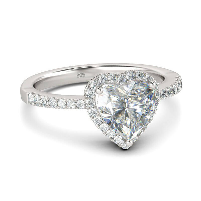 Hartvormige 2 Ct Moissanite Sterling Zilver Halo Ring